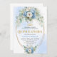 Chic Blue Peony Gold Script Quinceañera Invite Inbjudningar