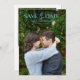 Modern bröllop spara datum-kort med information om din händelse över ditt favoritfoto med lodrät ord "SPARA DATE" i en kombination av ett elegant-skript och ett modernt sans serif-teckensnitt. Baksidan har en extra QR-kod för bild och valfritt. Du kan ta bort QR-koden i designredigeringsverktyget i verktyg.