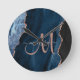 Chic Blue Ro Guld Agate Script Monogram Anpassning Rund Klocka