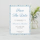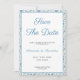 Chic Blue Toile de Jouy Blommigt Gräns Bröllop Spara Datumet