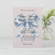 Chic Blue White Bow Blush Pink Wedding Inbjudningar