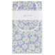 Chic och färsk med dammig blå blommigt. Bröllopsäcken utesluter en ung charm. Mallen innehåller ett "tack", ett par namn på framsidan och daterar längst bak i ett vackert varmt, guldfärgat färg. Denna punkt ingår i en svit för fullt bröllop som innehåller inbjudningar, OSA kort och mycket mer.