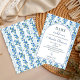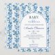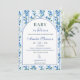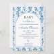 Fira din lilla en med denna eleganta "Baby in Bloom"-inbjudan med mjuka, dammiga blå vattenfärgblommor och ömtåliga vilda blommor i boho-chic stil. Designad med en fräsch trädgårdsinspirerad look är denna inbjudan perfekt för vår-, sommar-, höst- eller vintersammankomster, brunchfirande och välkomstfirande av en babypojke. Den luftiga blå blomsterpaletten och romantiska vattenfärgsdetaljerna skapar en tidlös och charmerande design som passar både moderna och rustika teman. Helt anpassningsbar för namn, datum, tid och evenemangsinformation.