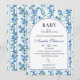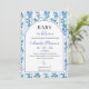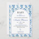 Fira din lilla med denna eleganta Baby in Bloom-inbjudan med mjuka, dammiga blå vattenfärgblommor och ömtåliga vilda blommor i boho-chic stil. Designad med en fräsch trädgårdsinspirerad look är denna inbjudan perfekt för vår-, sommar-, höst- eller vintersammankomster, brunchfirande och välkomnandet av en babypojke. Det luftiga blå blommiga paljettet och de romantiska vattenfärgsdetaljerna skapar en tidlös och charmig design som passar både moderna och rustika teman. Helt anpassningsbar för namn, datum, tid och evenemangsinformation.