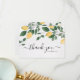 Chic tackkort med elegant kalligrafi-skrift, en rustik texturerad effekt vit bakgrund, akvarell citrus saftiga citroner, ömtåliga vita blomsterblommor och handmålad grönska. Personifiera med din information eller klicka "anpassa ytterligare" för att redigera teckensnitt, storlek och färger. Kan också personifieras på baksidan med ditt eget skrivna meddelande eller ta bort detta utrymme för att handskriva ditt eget.