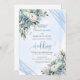 Chic Boho Pastel Blue Silver Flowers Bröllop Inbjudningar
