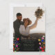 Lägg till en liten bohemisk elegans i bröllop med den moderna Chicen Boho Bright Elegant Colorful vild blommor 2 foton bröllop spara datum. Med rosa, rött, grönt och lila hues botaniska blommor som inspirerats av vilda blommor och vattenfärgade, rustiska trädgårdar med subtle grey och modern boho script typography on mörk bakgrund. Med elegantens moderna manustypografi, perfekt för orsakssamband, utomhusträdgårdsbröllop.
