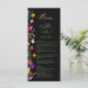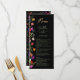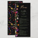 Lägg till en liten bohemisk elegans till din bröllop-middag med den här Modern Chic Boho Bright Elegant Colorful vild blommor bröllop-menyn. Med rosa, rött, grönt och lila hues botaniska blommor som inspirerats av vilda blommor och vattenfärgade, rustiska trädgårdar med subtle grey och modern boho script typography on mörk bakgrund. Med elegantens moderna manustypografi, perfekt för orsakssamband, utomhusträdgårdsbröllop.