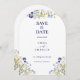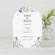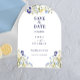 Chic boho simple wildblomma Bröllop spara datum med blå kalligrafi