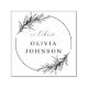 Chic Botaniskt Löv Skriptet Ex Libris Anpassat namn för självtryckande Frimärke. Med handritade löv placerade ovanpå ett tunt cirkulärt gräns visas "ex libris" i skriptet för elegant och ditt eget namn i ren serif.