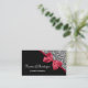 affärskort med rött och svart chic med modersmjölksersättning i svart och vitt och ett gigrött band som är bundet till en snyggt båge. Dessa högkvalitativa, men prisvärda, affärskort kommer säkert att locka nya kunder och kunder till professionellens skönhet och salon. Platt utskriven bild, inte verklig båge.