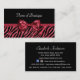 Glamorösa boutiska affärskort med en chic röd och svart glitter-liknande zebra tryck och en luxisk sekvin-gnistra band bunden in i en glitzisk båge. Anpassa genom att lägga till namn i professionellens konsult eller stylist och arbetstid. De här affärskorten för glitz och glam skönhet, boutique eller salon är perfekt för att locka nya kunder och kunder. Platt utskriven bild, INTE glitter eller menyfliksområdet.
