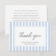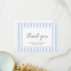 Thank your guests in effortless style with this elegant bridal shower thank you card. Featuring chic typography and clean, contemporary stripes, this design brings a fresh, minimalist touch to your special celebration. Easily personalize the template with the bride’s name and party date. On the back you can add a heartfelt message to friends and family, or leave it blank for your own handwritten note. A custom design with fully editable text, allowing you to create a truly tailored card. Its versatile style complements various occasions and is particularly perfect for spring and summer celebrations. Printed colors: pastel blue, white and dark gray text, or customize the colors to suit your scheme. Explore the online collection for matching designs!