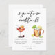 Den här chicen namnteckning cocktails Meny lakan har en enkel svart typografi över 2 drycker och deras ingredienser för din bröllop pub. En söt Cherry-Fransk 75 och Moskva Mule teckning lägger till en coola till pub-menyn. Fyll i med parets namn och mottagningsdatum.