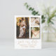 Elegant och enkel spara vårt datum meddelande. Denna mall har utrymme för 3 av dina favoritfoton av par i vitt med cool handskriven kalligrafi i guld. Lätt att redigera med dina egna unika detaljer.