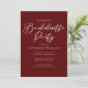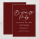 This elegant burgundy bachelorette party invitation features classic white script for a bride who loves the upscale, chic events. Celebrate your friend with this romantic, rich red color on this chic, minimalist bachelorette party invite.
