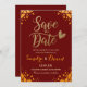 Meddela din speciella dag i stil med den här fantastiska burgundi och guld-geometriska Spara datumkortet. Den här designen har en rik, djup röd bakgrund med lyxaktiga accenter från guld, och är elegant och sofistikerad. Perfekt för formella bröllop-, falla firande- eller kvällsärenden. Med det här Spara datumet ser du till att dina gäster markerar sina kalendrar för din oförglömliga dag. Anpassa den med dina namn- och bröllop-detaljer för en vacker keepy.