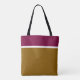 Den här eleganta chicen har en bred röd överkant rand som är skisserad i vitt, ovanför ett dynamiskt golden-sadelbrunt färg-block som fyller resten av designen.