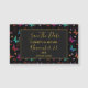 Öga sparar påminnelsen om datumet bröllop i svart och guld. Designad med en elegant mönster med en grafisk illustration av fladderfjärilar i många ljusa färger, som på ett mycket bra sätt kontrasterar mot den svarta bakgrunden. Viktiga blommigtar, spritar och löv tillför lite charm. Ett svart ram med en guld färgad gräns överst med personligen inuti. Anpassa med bruden och rummen namn och deras placering och datum i bröllop.