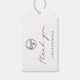 Enkel Märkre för svartvit företagsprodukt med "tack för ditt köp" med "tack" i kalligrafi tillsammans med företagets logotyp, medieikoner i social och qr-kod. En minimalistisk utformning med chic-typografi för elegantens beröring.