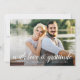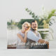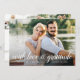 Ett platt tack för eleganten med dina favoritbilder av bröllop i utfallet från fullt, med "med kärlek och tacksamhet" eller ditt anpassningsbar-meddelande överlagt med ett vitt kalligrafiskt skript, med namn och bröllopsdag under. Sex av dina favoritfoton i bröllop visas på baksidan i en samlingslayout. Anpassa baksidan med ett förtryckt meddelande eller ta bort exempeltexten om du föredrar en handskriven anteckning.