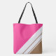 Den här moderna, eleganta designen har tre högers vit diagonal parallell tävla rand mot mocha brun och skarp rosa bakgrunder.
