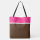 Den här eleganta chicen har en bred, ljusstark rosa överst kant rand, skisserad i vitt, ovanför ett vibrerande brunt färg i mörk som fyller resten av designen.