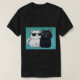 A charming white and black cat duo with sunglasses sits together against a turquoise background. This cute, modern illustration features sleek lines and a playful vibe, with the cats’ cool shades adding a stylish touch.