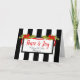 CHIC CHRISTMAS CARD_"FRED AND JOY" RED TEXT I WHITE RAM MED BLACK NAMN TEXT. RED BOWS MED GREENERY. SVART OCH VITT BACKGRUND.