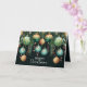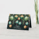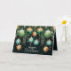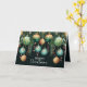 Elegant business Christmas holiday folded greeting cards feature a design of pine branches, green and gold Christmas ball ornaments and ribbons on a dark green background with Merry Christmas in chic lettering on the front and your personal greeting, thank you and names on the inside. MATCHING items in our collection.