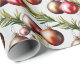 Christmas tree ornaments and pine branches are featured on these wrapping paper rolls, stylish for any Christmas holiday gift-giving occasion.