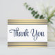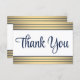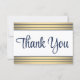Uttrycklig tacksamhet till familj och vänner för alla tillfälle med elegantens anpassade platta tackkort. Alla formuleringar är enkla att anpassa eller radera. Om du föredrar att ge skrivan ditt tackmeddelande raderar du bara exempeltexten. Den här moderna marinblå, vita och guld-malldesignen har chic faux foil strimlad trim med snyggt klassisk skriptypografi. Observera att guld är tryckt på färg, inte metallfolie. Elegant personlig tackkort gör en tankfull avslutande beröring till alla händelser, firande eller sammankomst.