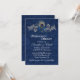 Chic bröllop repetitionsmiddagsinbjudan som görs i blått på blått dammmönster. Bilder med en elegant silver-ton blomstrar, med blå båge och fjäder för påhitt, dekorerar inbjudets överkant. Text i lätt grått är redo att anpassa för din speciella händelse. Matchande bröllop-produkter finns tillgängliga.