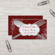 Stilfulla djupa - den röda visitkorten, med diagram av ett stort silver tonar dela sig och skedar, och eleganta vitkrusidullar, i tränga någon. En dekorativt vit och silver tonar textplatta, över silverwaren, har beställnings- röd text. Baksidaen av kortet göras i en mörk - som är röd, med beställnings- vittextredo för att personifiera. Det stilfulla stativ ut card som lämnar ett underbart hållbart intryck för din catering eller någon tjänste- affär för mat.