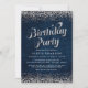 Dessa chic denim & diamanter födelsedagsfest inbjudan har "Födelsedagsfest" i ord i ett roligt-skript med små konetti-pärlor överst och grund mot en denim-bakgrund. Utformad av den fläckade olive™.