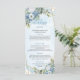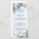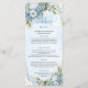 Chic Dusty Blåa blommor Greenery Guld Bröllop Menu Meny