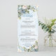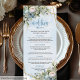 Chic Dusty Blåa blommor White Guld Bröllop Menu Meny