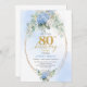 Celebrate a remarkable milestone with this 80th birthday invitation featuring one of today’s most trendy and elegant color combinations: blue and gold. Designed with soft watercolor blue hydrangeas, fresh eucalyptus greenery, and refined gold floral accents, this invitation brings a sense of calm sophistication and joyful celebration to an unforgettable occasion.