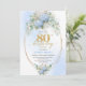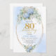 Chic Dusty Blue Floral Gold 80th Birthday Invite Inbjudningar