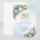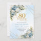 Chic Dusty Blue Floral Gold 80th Birthday Invites Inbjudningar