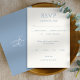 Fantastiskt blått och elfenbenst flata responskort med ett par monogram på baksidan. Den här mallen innehåller en uppsättning contemporary med typsnitt och enkla val av gästmåltider för anpassade. Objektet är en del av en samling i bröllop som innehåller ett ritat urval av stationära som ska matchas.