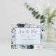 Chic Dusty Blue Navy Blommig Spara Datum Meddelande Vykort