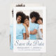 Chic Dusty Blue Script Photo Bröllop spara datum