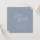 Set the tone for your wedding day with a Save the Date that balances minimalist sophistication with contemporary flair. This square-format card features a striking Dusty Blue backdrop that makes the crisp white text pop, creating a look that is both fresh and timeless.