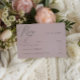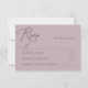 Denna unika, enkla och smidigt romantiska dammiga OSA kort i ro är perfekten som tillägg till er svit för bröllop. Det är designat med grått-typografi av modern mörk och en ren, minimalistisk utformning. Fullständigt anpassade till kostym i firande kompletterar detta svarskort på ett utmärkt sätt boho, minimalistiska, moderna och destinationsbaserade bröllopsteman med ett enkelt stil.