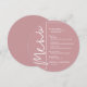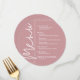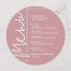 Ett runt menykort i dammig ros för middagsservering med dina menyval i chic vit text, perfekt för en modern bröllopsmottagning, bröllopsrepetition middag, årsfest eller någon speciell händelse med en sittande middag. Anpassa enkelt med dina middagsval och detaljer. FLER färger i vår butik.