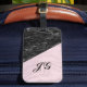 Förbättra resandet och identifiera resväskan med en bagagemärkning som är tillverkad av anpassningsbarna. Chic Elegant Black Rosa Marble Monogrammed Luggage Tag. Underbar presentidé.