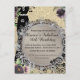 En svart klänning på en guld-glitterbakgrund med chic med dekorativa snurrar kombinerat med en svep med silver blomning där du kan anpassa din lila blommor. Snyggtens giriga elegans.