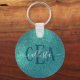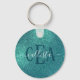 Chic Elegant Teal Blue Sparkly Glitter Monogram Nyckelring