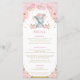 Chic Elephant Rosa Blommigt Baby Shower Menu Program